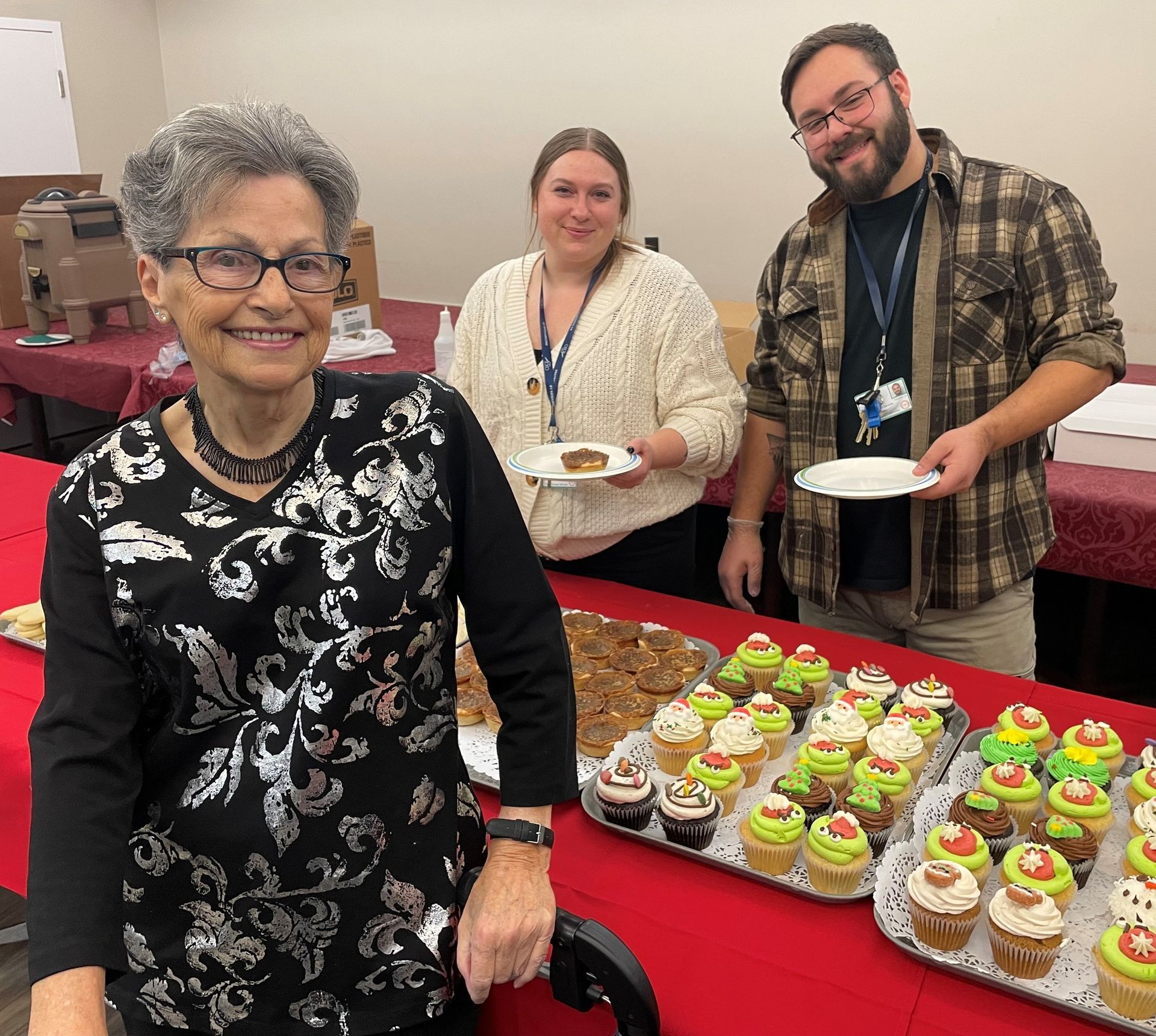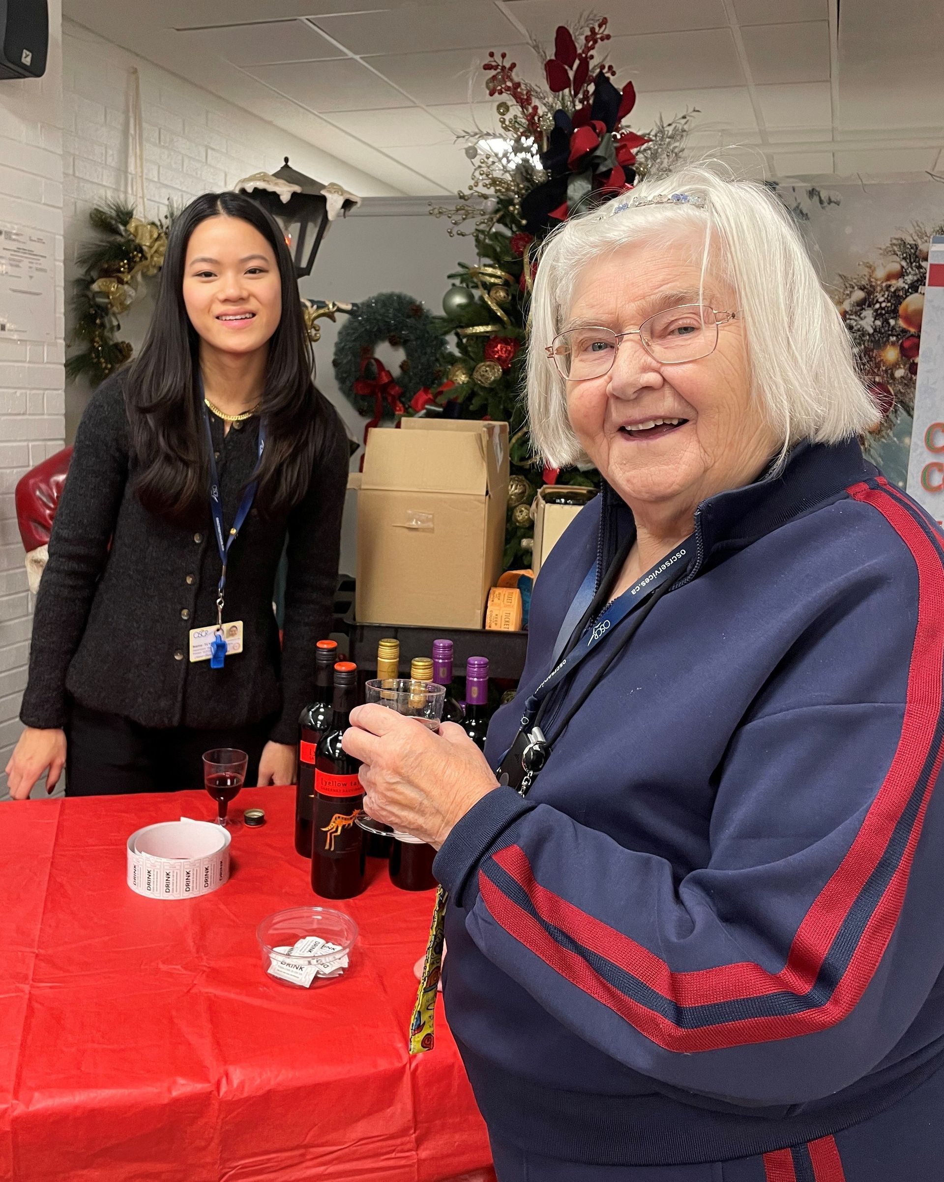 The festivities got underway with the beautiful sounds of carols played on the violin by Xinru, one of OSCR’s wonderful volunteers. Clients and their guests mingled in the dining room as they enjoyed warm apple cider, hot chocolate, and a variety of sweet treats while they awaited the musical performance.